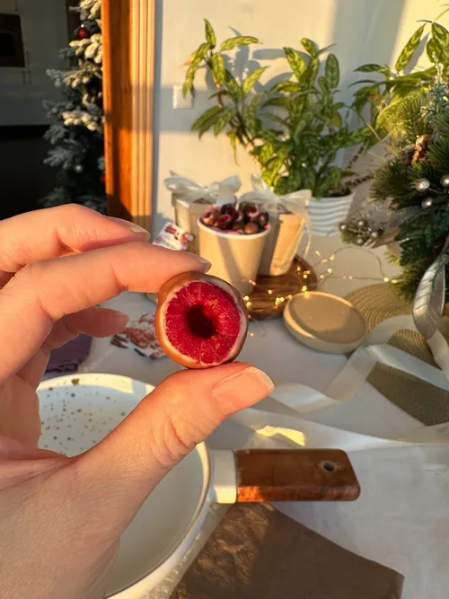 Мы используем только высококачественные продукты без добавок и заменителей. Всего 3 ингредиента: малина и 2 слоя бельгийского шоколада Callebaut, что дает особый вкус десерту.